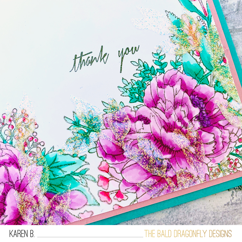The Sympathy Card. A card that is needed- and the most requested type of card I'm asked for- but not much fun to make. Florals are always a good go to for sympathy cards. The Sketched Floral Background Stamp from Erin Lee Creative (not currently available) was perfect for the look I wanted to achieve. I stamped the background in light gray ink and then loosely watercolored them. I didn't take my time, just dropped color in.
